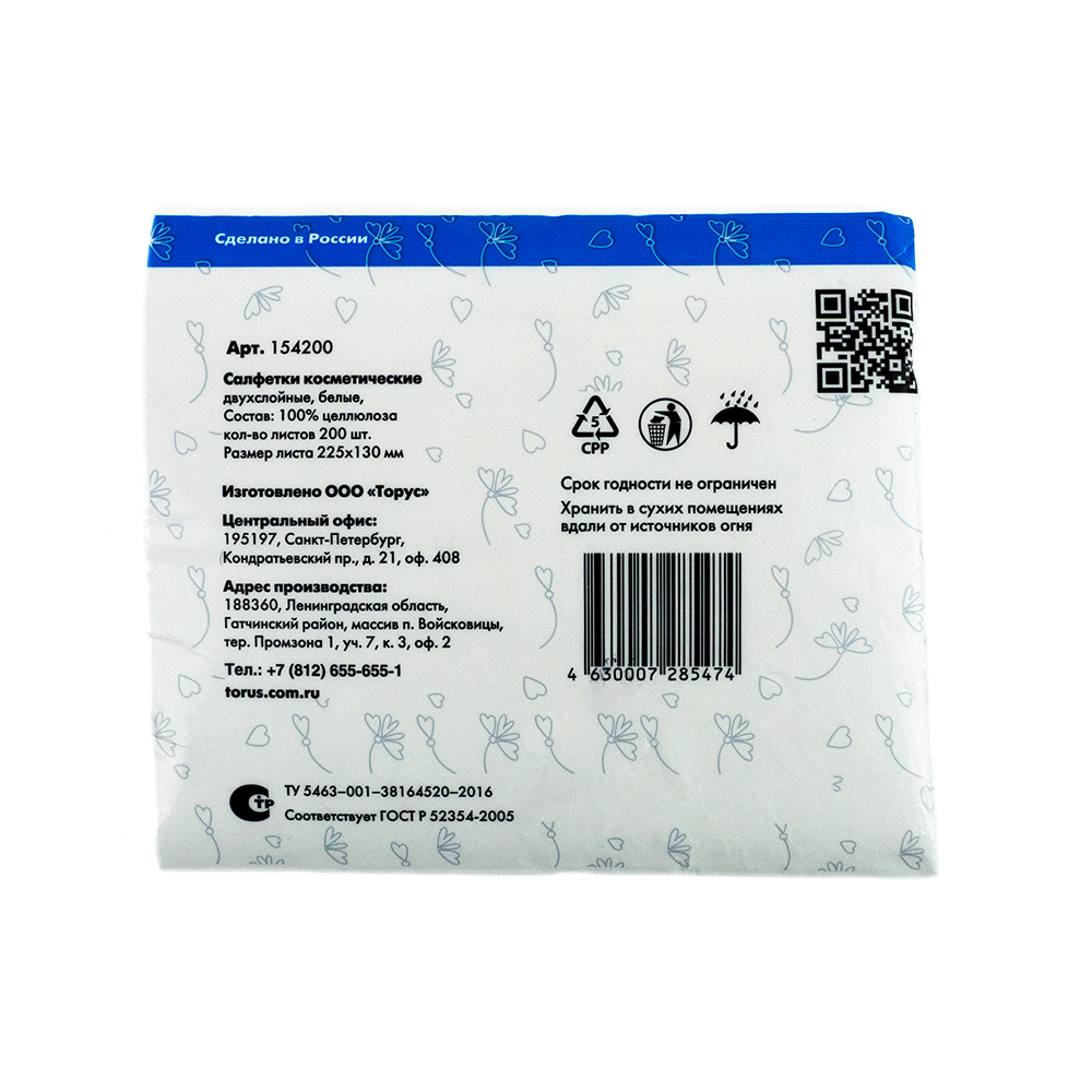 Удобная упаковка-диспансер с ультрамягкими двухслойными косметическими салфетками из 100% целюлозы.