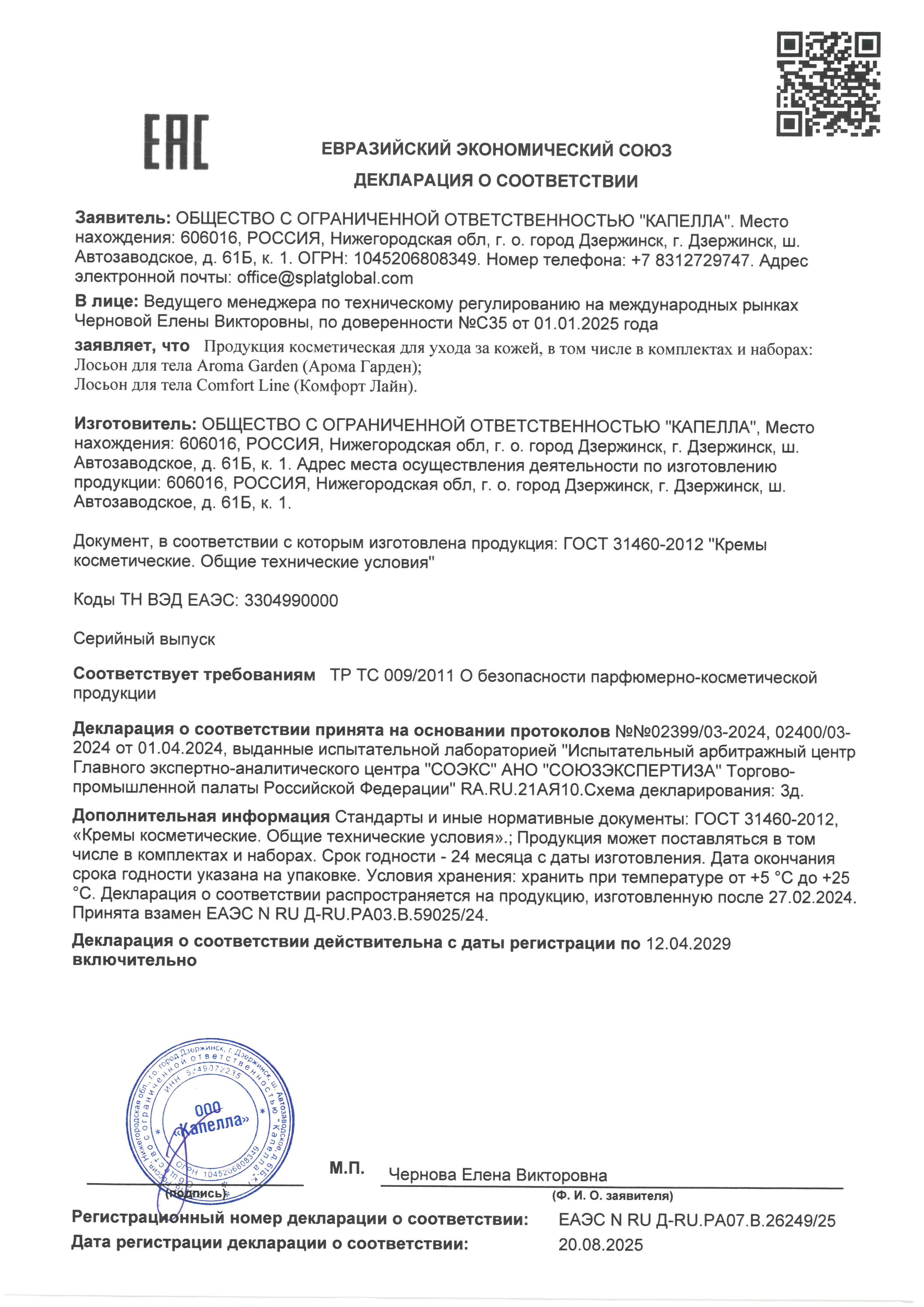 Легкий и нежный лосьон обеспечивает глубокое увлажнение кожи. Быстро впитывается, не оставляя следов на одежде.
