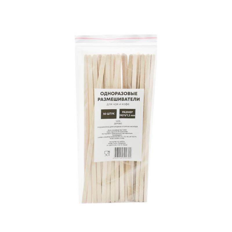 Размешиватель одноразовый деревянный 190 мм 50 штук в упаковке.