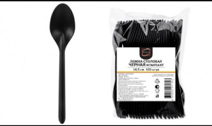 Ложка одноразовая черная 165 мм 100 штук в упаковке