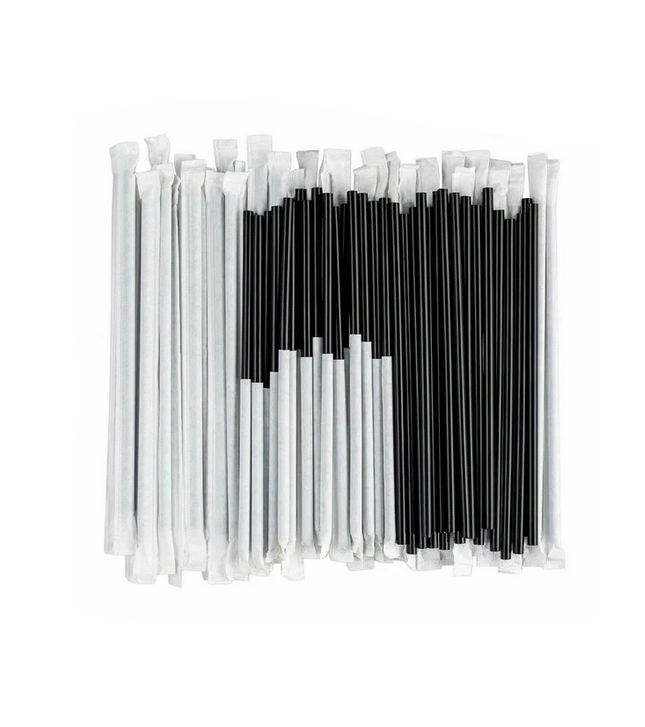 Трубочки в индивидуальной упаковке черные 7х210,