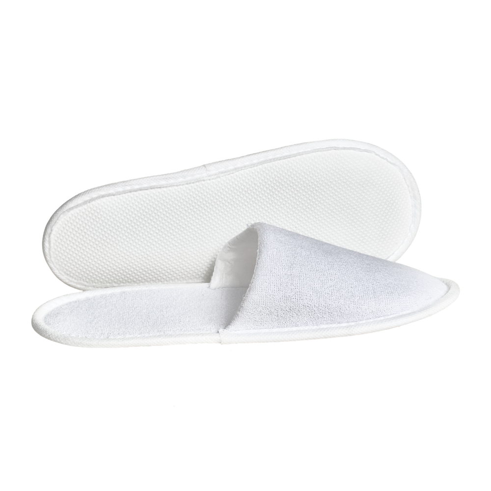 Одноразовые тапочки "Бизнес" с закрытым мысом из хлопковой петлевой махры подойдут для гостиниц, отелей и гостевых домов, благодаря натуральному составу ткани и мягкой подошве, обеспечат вашимя гостям удобство и комфорт использования.