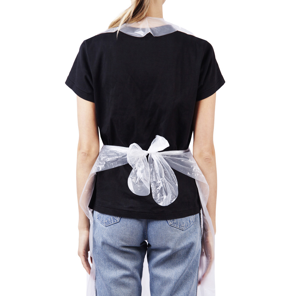 Фартук полиэтиленовый отлично защищает от загрязнений, не пропускает влагу. Одноразовый фартук легко раскрывается и надевается, при этом не ощущается при ношении.