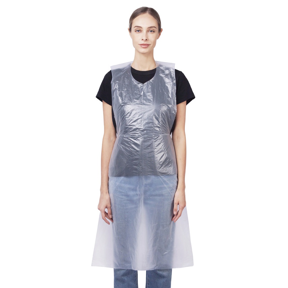 Фартук полиэтиленовый отлично защищает от загрязнений, не пропускает влагу. Одноразовый фартук легко раскрывается и надевается, при этом не ощущается при ношении.