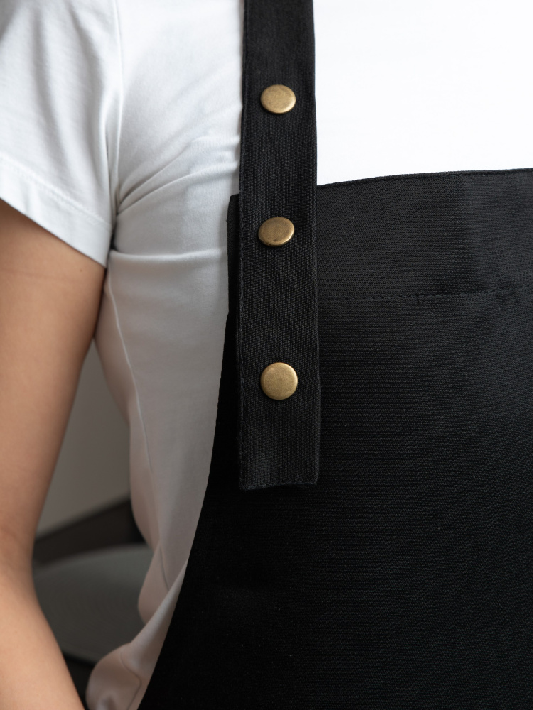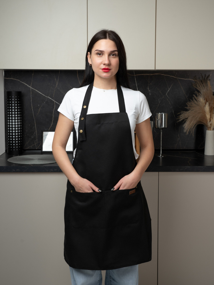 Функциональные карманы на передней части фартука позволяют удобно разместить необходимые инструменты и мелкие аксессуары, делая процесс работы комфортнее и организованнее. Такой фартук станет надёжным помощником как дома, так и в профессиональной среде — в кафе, ресторанах, студиях и творческих мастерских.
