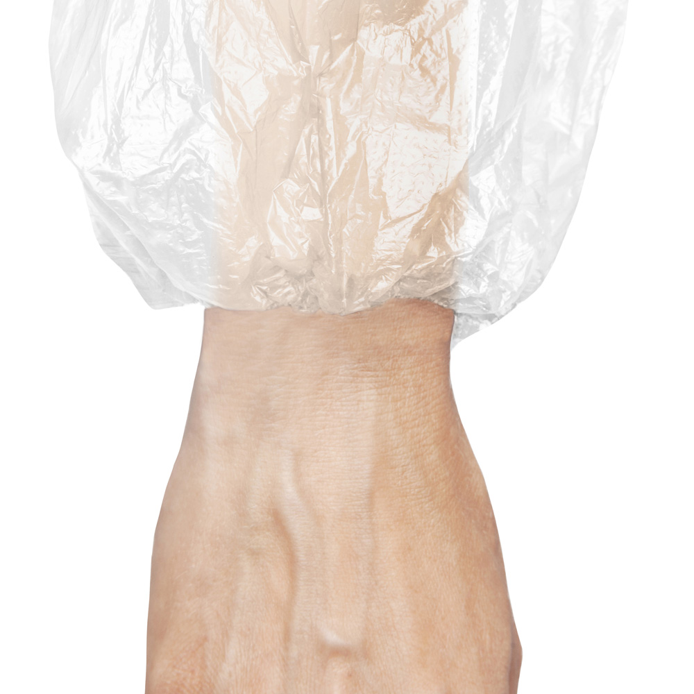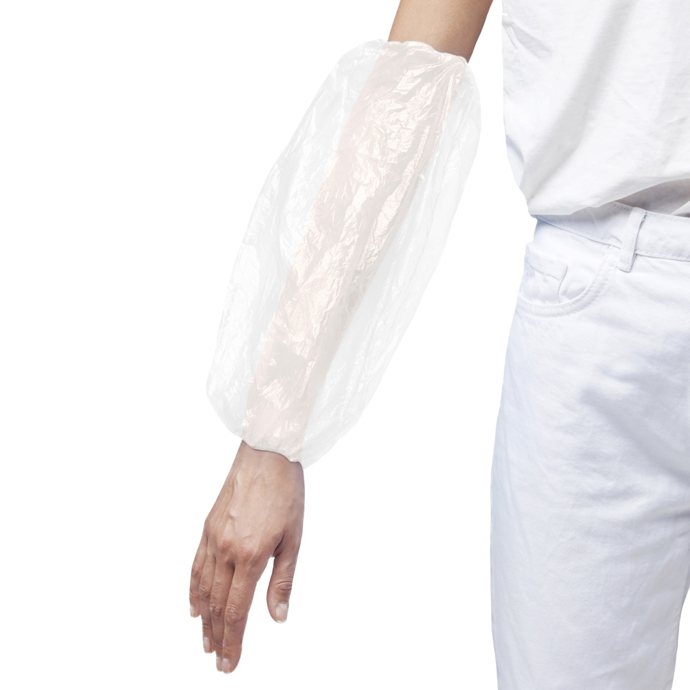 Для изготовления нарукавников используется прочный полиэтилен. Нарукавник хорошо фиксируется на руке при помощи резинки. Полиэтиленовые нарукавники применяются для защиты одежды от различного рода загрязнений. Очень востребованы в различных сферах: медицине, пищевых производствах, химических лабораториях, косметических салонах.