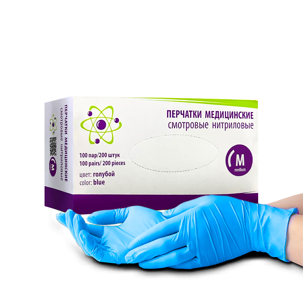 Перчатки медицинские смотровые нитриловые 3 гр., цвет голубой, M №100/1000 ЧЗ