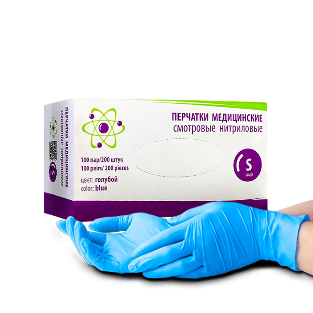 Перчатки медицинские смотровые нитриловые 3 гр., цвет голубой, S №100/1000 ЧЗ