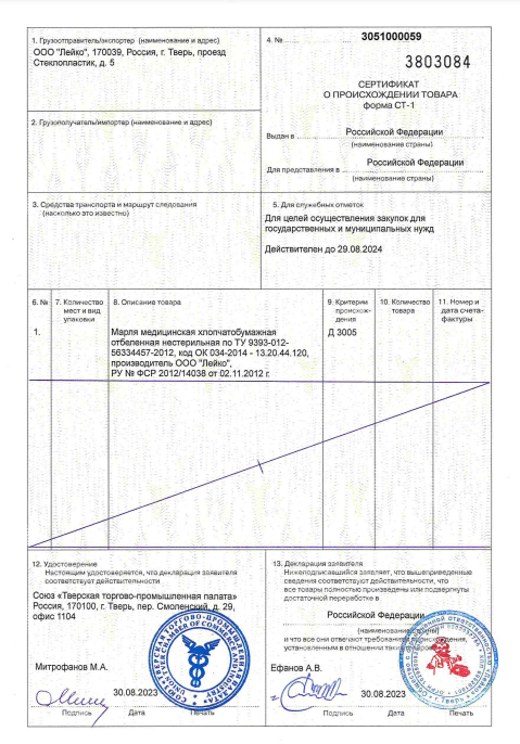 Марля медицинская хлопчатобумажная отбеленная предназначена для изготовления сорбционных перевязочных средств.