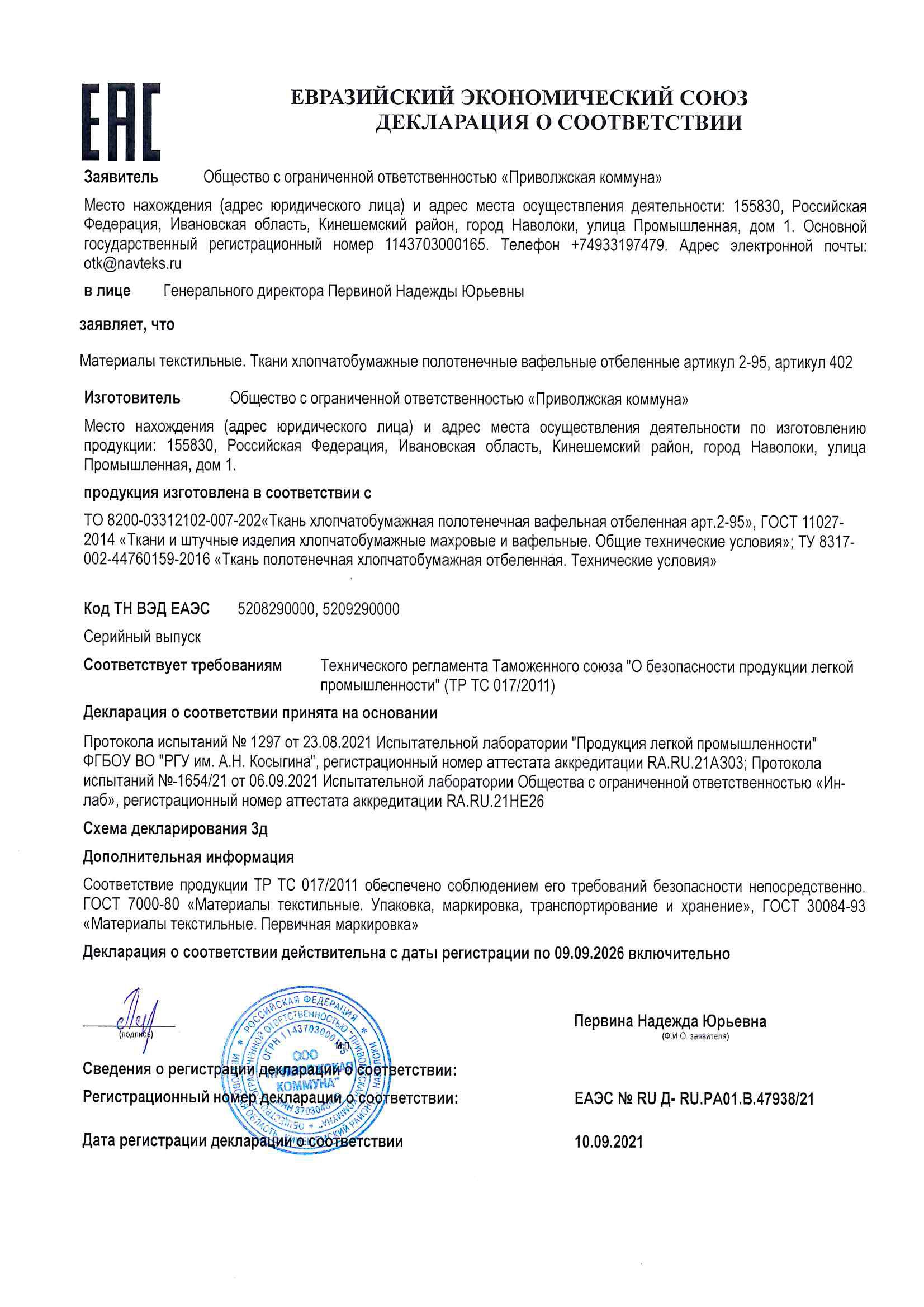 Декларация вафельное полотно